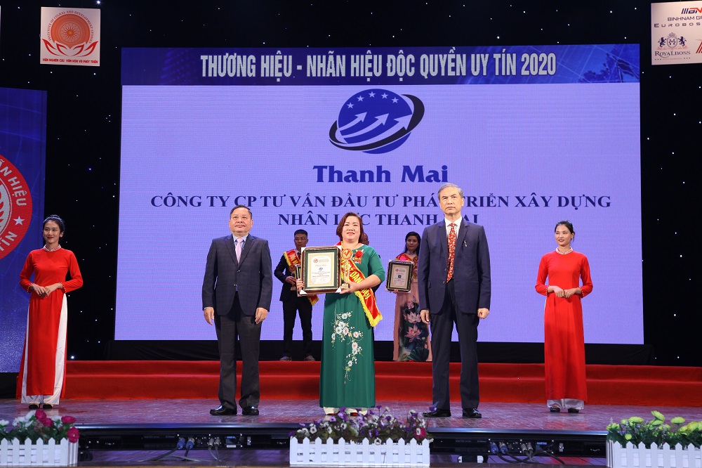 Với những triết lý, sứ mệnh, tầm nhìn và giá trị cốt lõi trao đến với cộng đồng, xã hội và những đóng góp không nhỏ đối với sự phát triển của các địa phương nơi ghi dấu ấn Thanh Mai, vào tháng 10/2020 vừa qua, trong khuôn khổ chương trình “Doanh nhân Việt Nam - Hào khí Thăng Long - Thương hiệu Vàng Thăng Long” 2020, Công ty CP Tư vấn Đầu tư phát triển xây dựng nhân lực Thanh Mai đã vinh dự được các cơ quan hữu quan, các đối tác và người tiêu dùng bình chọn là Top 10 “Thương hiệu - Nhãn hiệu nổi tiếng đất Việt” năm 2020; Doanh nhân Ngô Thị Mai được vinh danh “Gương mặt doanh nhân tiêu biểu thời đại 4.0”. Và gần đây nhất là vào 10/01/2021 vừa qua, thương hiệu Thanh Mai tiếp tục được bình chọn là Top 10 “Thương hiệu tin cậy - Sản phẩm chất lượng - Dịch vụ tận tâm” năm 2020.