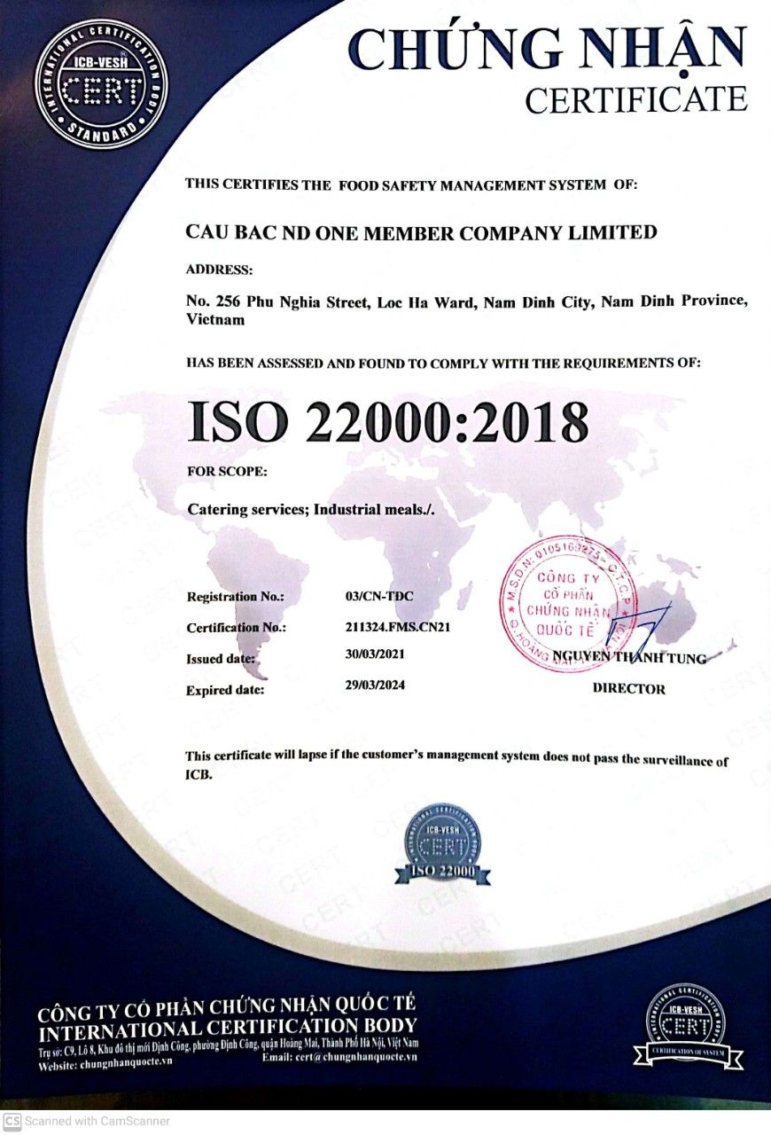 Công ty Cầu Bắc đã vinh dự được cấp Chứng nhận ISO 22000:2018