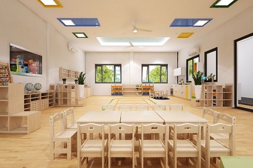 Bàn ghế, tủ sách lắp đặt tại Trường MN Song ngữ Happi kids