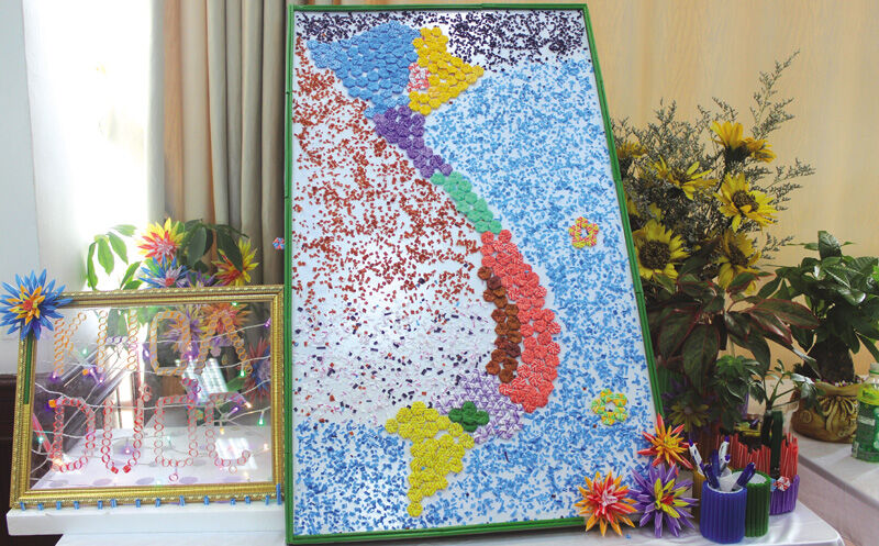 Bản đồ Việt Nam được sáng tạo từ ống hút nhựa.