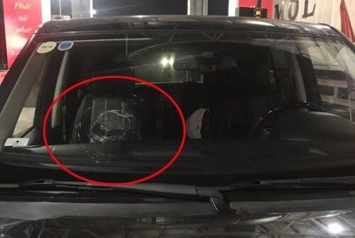 Xe Ranger Rover bị ném vỡ kính phía trước