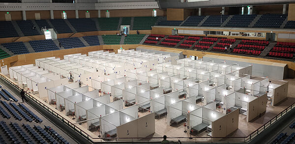 Toàn cảnh bệnh viện dã chiến cung thể thao Tiên Sơn. (Ảnh: Mạnh Hùng).