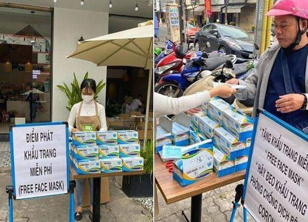 Thống kê của cộng đồng mạng xã hội cho thấy, đến tối 31/01/2020, Đà Nẵng đã có gần 40 cửa hàng, hiệu thuốc tham gia chiến dịch tự phát “phát miễn phí khẩu trang”. Hình thức phát khẩu trang được triển khai khá đa dạng. Có nhà thuốc phát tự do trước cửa quầy, có nhà thuốc phát tại quầy thuốc theo đơn hàng của khách, bất kể giá trị đơn hàng bao nhiêu. Bình quân mỗi người tiêu dùng được nhận 2 khẩu trang miễn phí. Tại một số cửa hàng, khẩu trang được đặt trong thùng trước cửa với niêm yết người cần dùng tự giác lấy 1 cái. Một số cửa hàng còn đem khẩu trang đến các điểm công cộng gần kề, các trạm xe buýt để phát miễn phí.