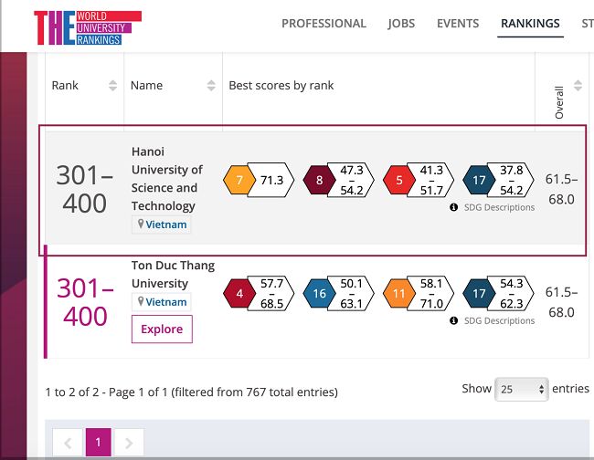 Mặc dù đây là lần đầu tham gia bảng xếp hạng, ảnh hưởng của ĐH Bách khoa Hà Nội đối với mục tiêu phát triển bền vững "Năng lượng sạch với giá thành hợp lý" được đánh giá cao, xếp thứ 33 trong số 361 nước tham gia.