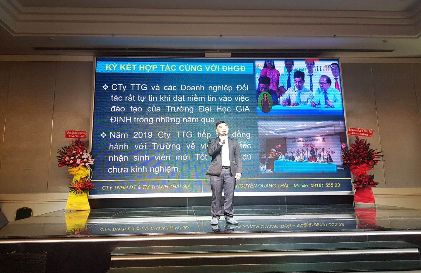 Ông Nguyễn Quang Thái – GĐ Cty TNHH TM Đầu tư Thành Thái Gia thông tin về cơ hội việc làm tại doanh nghiệp của mình với các tân cử nhân và tân kỹ sư.