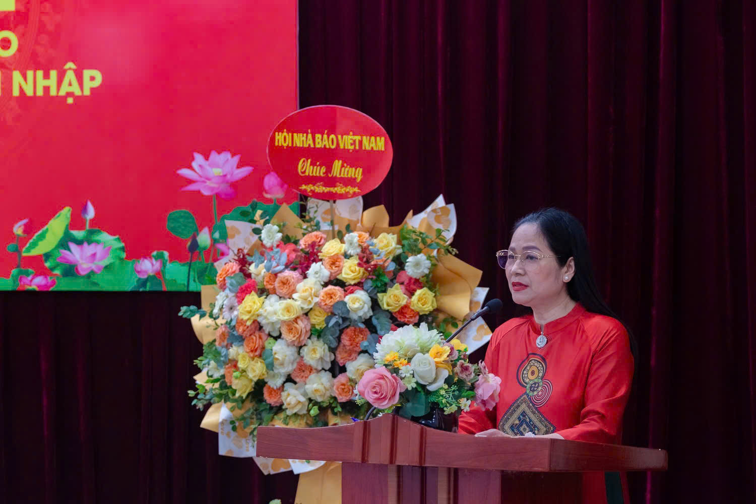 Đồng chí Vũ Thị Hà, Ủy viên BCH TƯ Hội Nhà báo Việt Nam, P.Chánh Văn phòng Hội Nhà báo Việt Nam phát biểu chúc mừng Đại hội