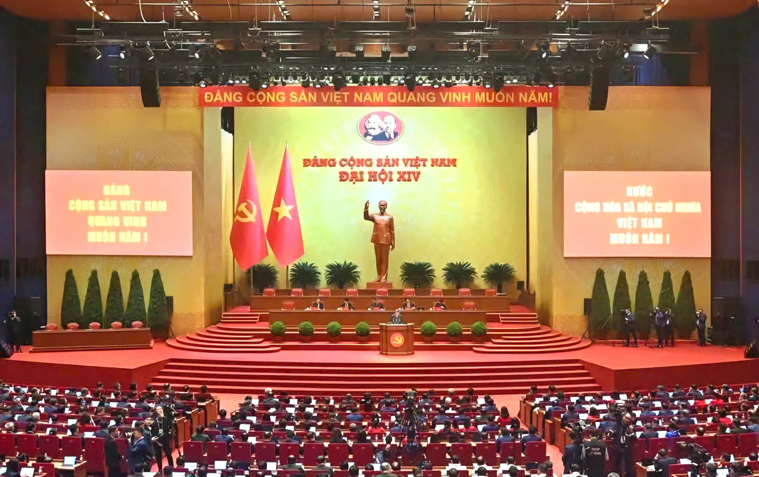 Toàn thể Đại hội dành một phút mặc niệm để tưởng nhớ đến đồng chí Cố Tổng Bí thư Nguyễn Phú Trọng và các đồng chí Ủy viên Ban Chấp hành Trung ương Đảng khóa XIII đã từ trần trong nhiệm kỳ Đại hội XIII.