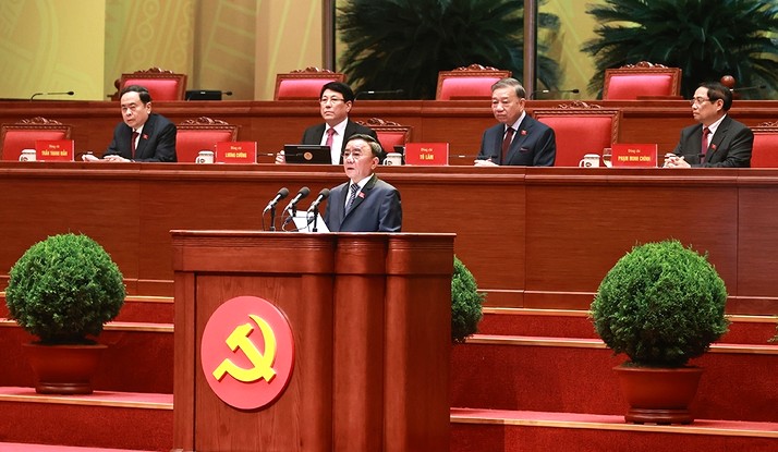 Đồng chí Trần Thanh Mẫn, Ủy viên Bộ Chính trị, Chủ tịch Quốc hội nước Cộng hòa xã hội chủ nghĩa Việt Nam thay mặt các đồng chí lãnh đạo chủ chốt của Đảng, Nhà nước điều hành phiên họp trù bị.