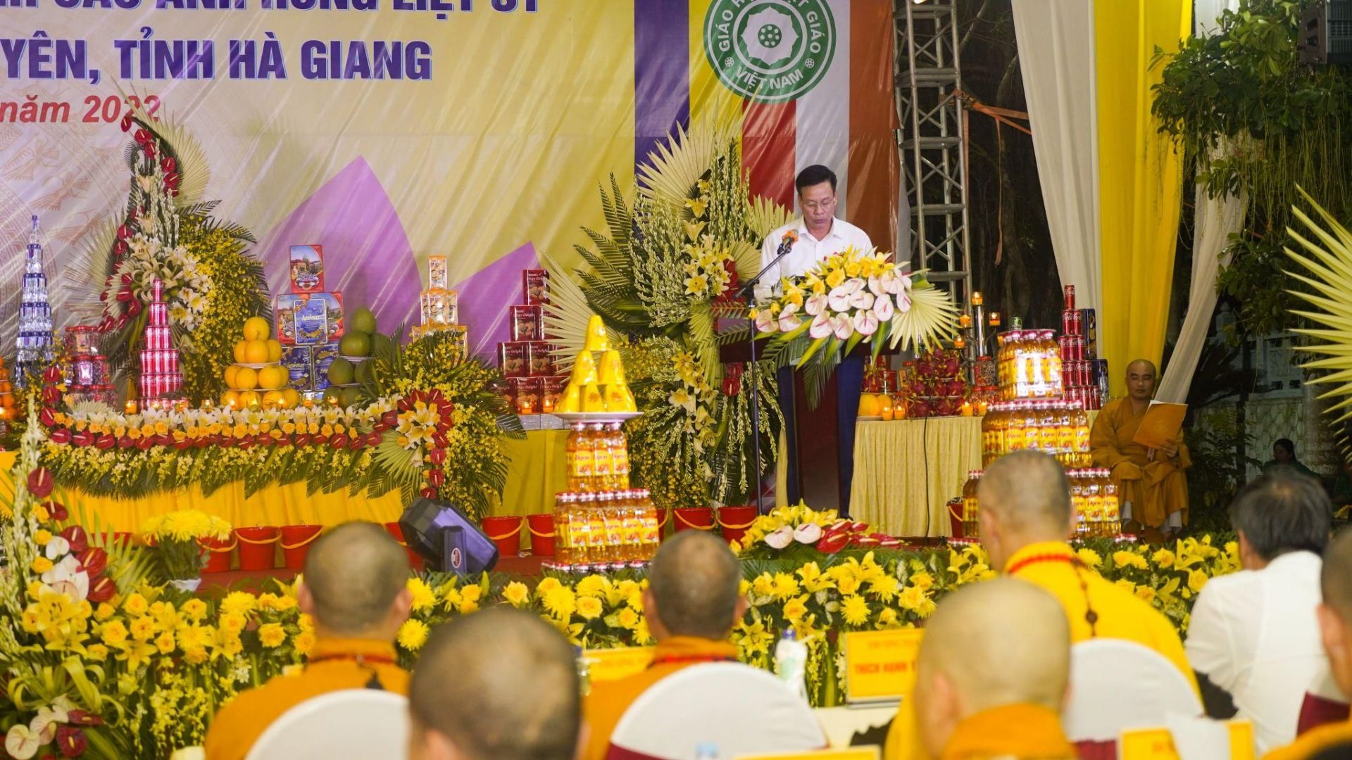 Phát biểu tại Đại lễ, Chủ tịch UBND tỉnh Hà Giang Nguyễn Văn Sơn nhấn mạnh công lao to lớn của anh hùng liệt sỹ đã ngã xuống trong cuộc chiến bảo vệ biên giới phía Bắc của đất nước, thế hệ đi sau luôn khắc ghi và noi theo thế hệ cha anh quyết tâm giữ vững nền độc lập, ra sức xây dựng và bảo vệ đất nước. Thay mặt cho lãnh đạo tỉnh, Chủ tịch Nguyễn Văn Sơn cũng gửi lời cảm ơn đến chư tôn giáo phẩm, Đại đức Tăng, Ni gia đình các thương, bệnh binh các cựu chiến binh lời chúc sức khỏe, bình an.