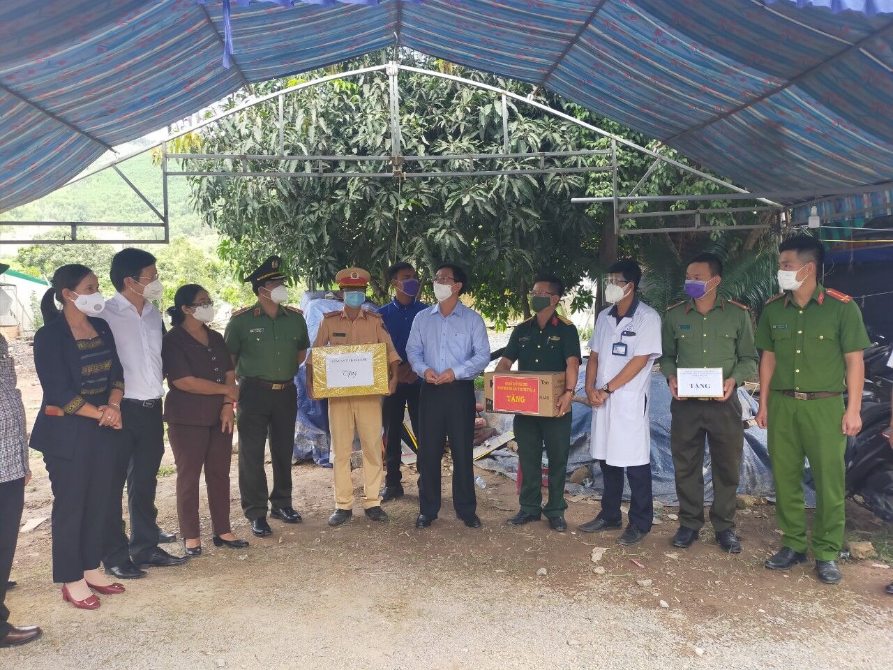 Nhân dịp này, Bí thư Tỉnh ủy Nguyễn Đình Trung đã tặng quà và 20 triệu đồng động viên các lực lượng làm nhiệm vụ tại Chốt.