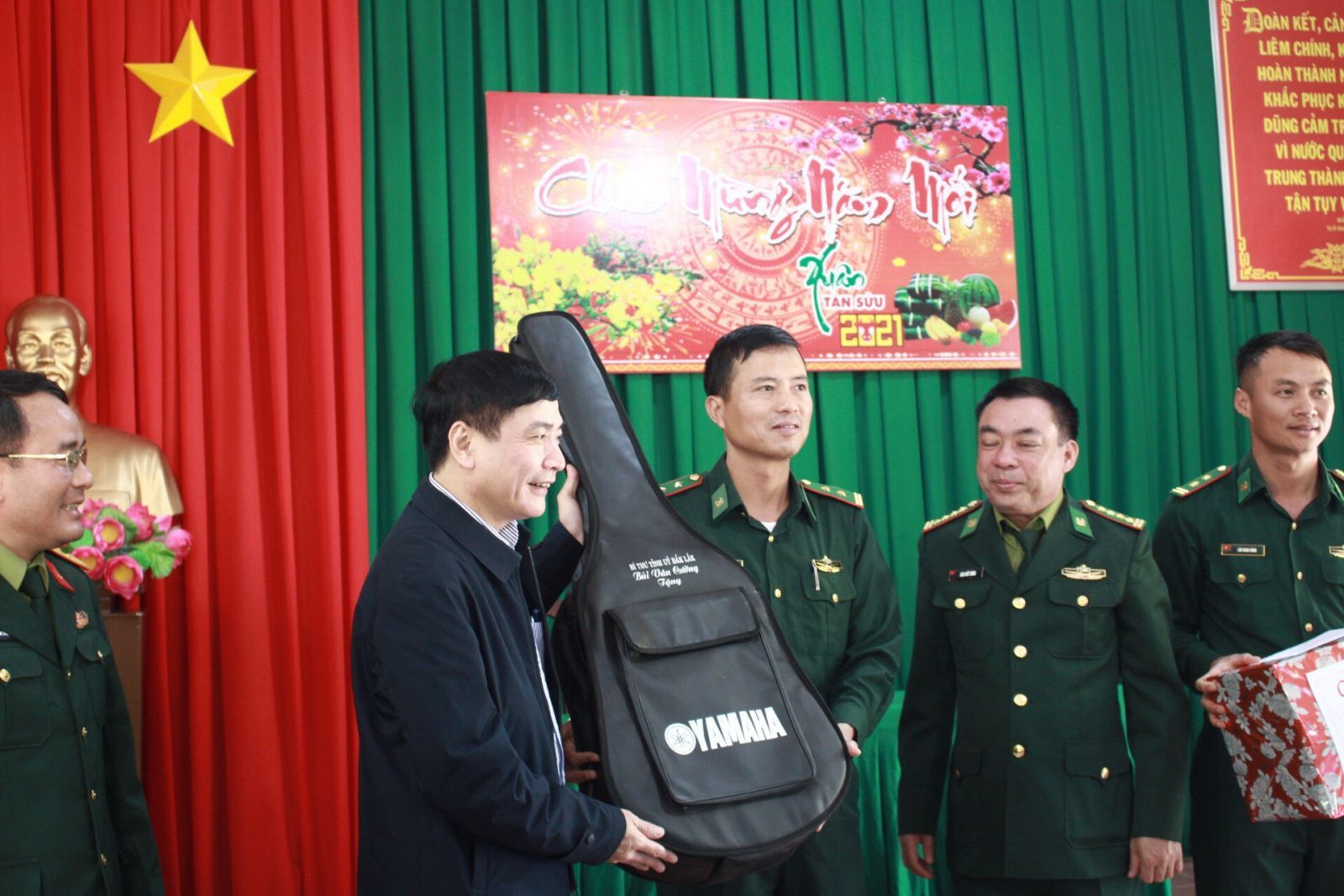 Nhân dịp này, Bí thư Bùi Văn Cường cùng đoàn đã tặng các phần quà và gửi lời chúc Tết tới gia đình các cán bộ, chiến sĩ đang thực hiện nhiệm vụ tại các đồn có một cái tết thật đầm ấm, yên vui, lành mạnh và tiết kiệm.