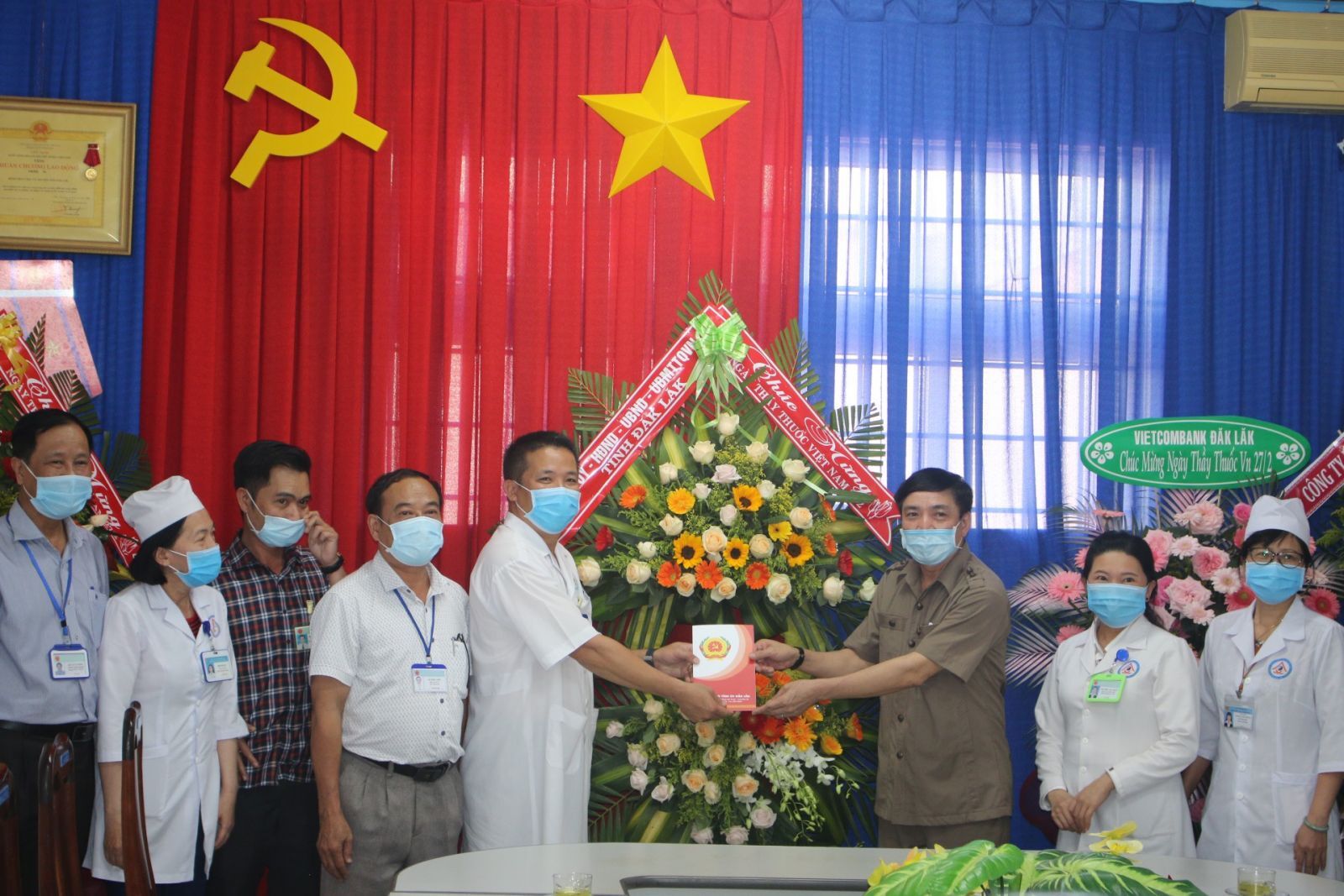 Sáng nay, đồng chí Bùi Văn Cường, Bí thư Tỉnh ủy Đắk Lắk đã dẫn đầu đoàn công tác thăm hỏi và làm việc với một số bệnh viện tại TP. Buôn Ma Thuột nhân kỷ niệm 66 năm ngày Thầy thuốc Việt Nam (27/02/1955 - 27/02/2021). Đi cùng đoàn còn có đồng chí Nay Phi La, Giám đốc Sở Y tế Đắk Lắk cùng một số đồng chí nằm trong Ban Thường vụ Tỉnh ủy.