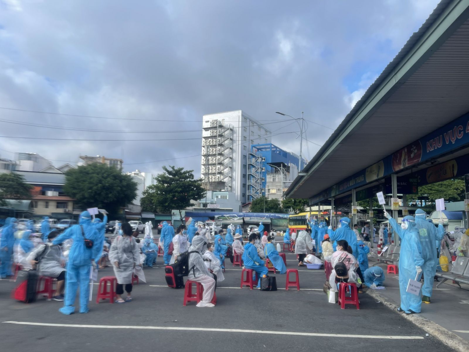 Đoàn công tác của UBND Tỉnh Đắk Lắk đã có mặt tại bến xe Miền đông vào sáng sớm ngày 10/8 để tiếp nhận công dân có hoàn cảnh đặc biệt...(ảnh BTGTĐ)
