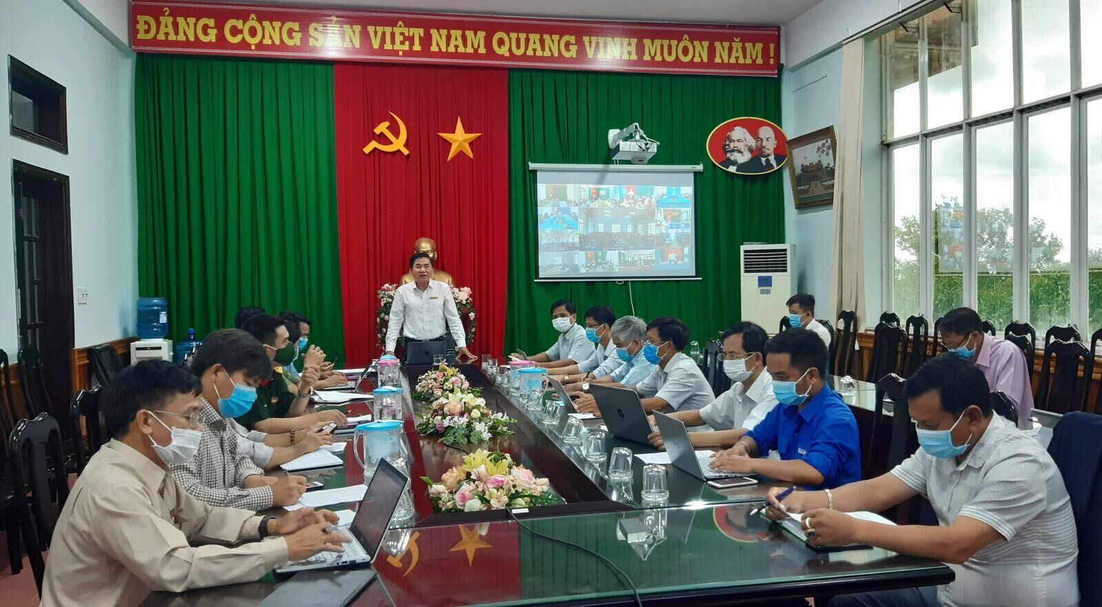 Trước tình hình dịch bệnh đang diễn biến phức tạp trên địa bàn tỉnh. Sáng 19-7, Ủy ban nhân dân huyện, Ban chỉ đạo phòng, chống dịch Covid-19 của huyện Krông Năng đã tổ chức hội nghị trực tuyến triển khai công tác phòng, chống dịch Covid-19 trên địa bàn huyện. Chủ trì hội nghị tại điểm cầu trung tâm huyện có đồng chí Trương Hoài Anh, Chủ tịch UBND huyện, Trưởng Ban chỉ đạo phòng chống dịch Covid-19 huyện.