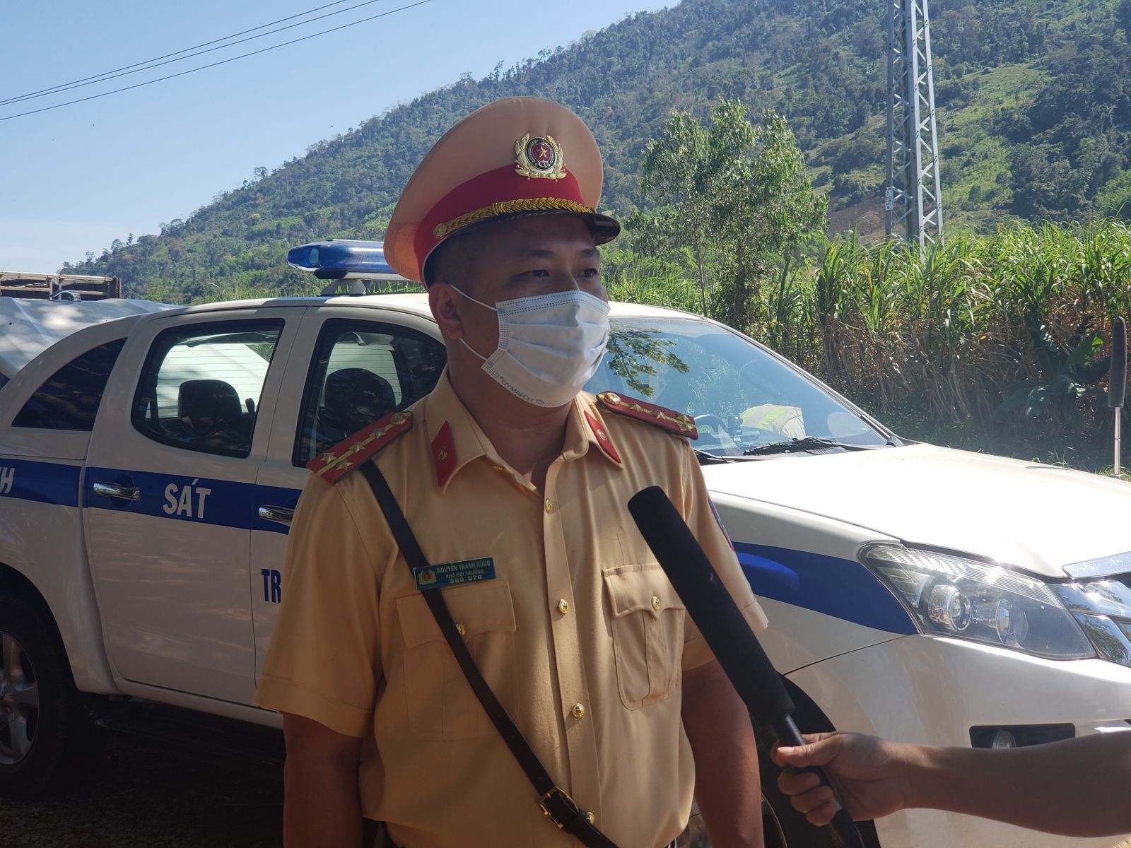 Chia sẻ với phóng viên, Đại uý Nguyễn Thanh Hùng, phó đội trưởng đội CSGT đường bộ số 2 cho biết: “Với nhiệm vụ là tuần tra kiểm soát, xử lý những vi phạm về an toàn giao thông, giảm tải tai nạn giao thông. Những nguyên nhân chủ yếu dẫn tới tai nạn giao thông là quá tốc độ, các xe vận tải là chở quá khổ, quá tải, quá chiều dài. Bên cạnh đó thì chúng tôi cũng nhắc nhở, tuyên truyền người dân, các doanh nghiệp vận tải chấp hành đúng luật, đảm bảo giao thông trên tuyến được an toàn”