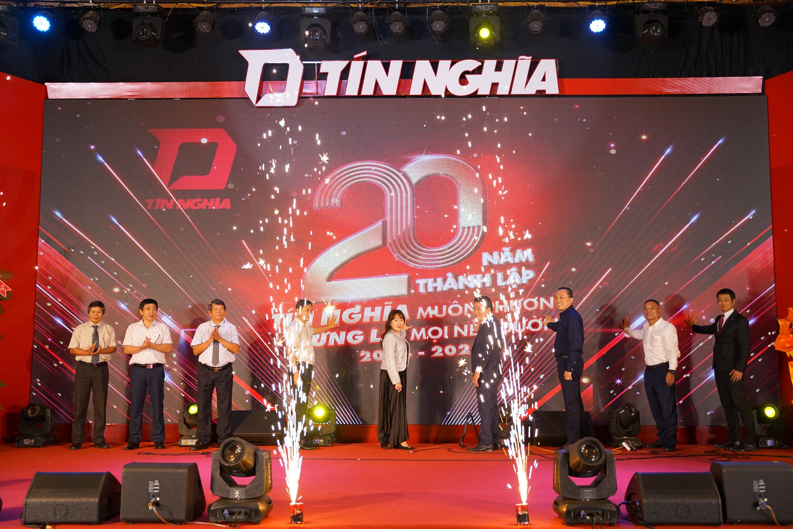 Các đại biểu, khách mời, quý đối tác cùng lãnh đạo công ty cổ phần Tín Nghĩa Logistics với nghi thức chúc mừng 20 năm thành lập công ty.
