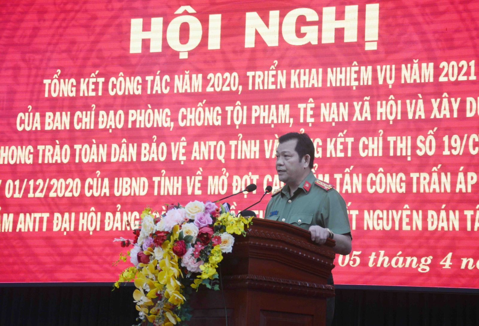 Đồng chí Võ Văn Cảnh, Phó Chủ tịch UBND tỉnh, Trưởng Ban đã ghi nhận và đánh giá cao những kết quả các cơ quan, đơn vị, địa phương đã đạt được trong thời gian qua. Bên cạnh đó cũng đề nghị các cơ quan, đơn vị, địa phương tiếp tục triển khai thực hiện nghiêm túc, có hiệu quả các Chỉ thị, Nghị quyết của Đảng, kế hoạch của Tỉnh về công tác phòng chống tội phạm, phòng chống ma túy, phòng chống mua bán người, xây dựng phong trào Toàn dân bảo vệ an ninh Tổ quốc; thường xuyên đổi mới, nâng cao hiệu quả, chất lượng các hoạt động tuyên truyền, giáo dục pháp luật; thực hiện có hiệu quả các biện pháp xử lý hành chính, công tác quản lý, giáo dục đối tượng vi phạm tại xã phường thị trấn; tập trung chỉ đạo, triển khai các biện pháp, bảo vệ tuyệt đối an ninh, đảm bảo an toàn trong công tác bầu cử đại biểu quốc hội khóa XV và bầu cử đại biểu HĐND các cấp nhiệm kỳ 2021-2026; nâng cao chất lượng công tác điều tra, xử lý tội phạm, tuân thủ đầy đủ các quy định của pháp luật trong hoạt động điều tra trong thời gian tới. Đảm bảo tiến độ Dự án cơ sở dữ liệu Quốc gia về dân cư, Dự án sản xuất, cấp và quản lý căn cước công dân trên địa bàn tỉnh.