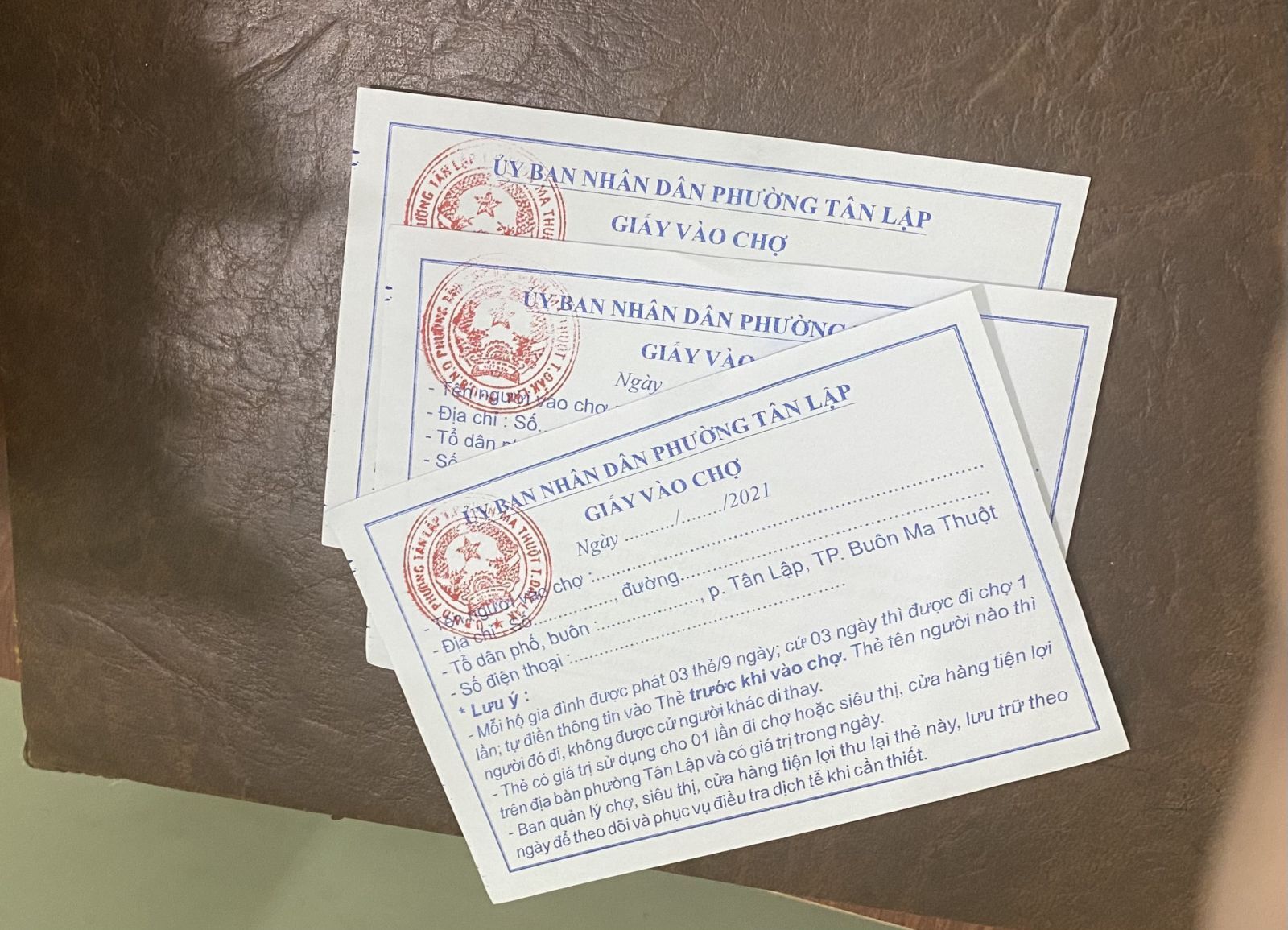 Mỗi hộ được nhận 3 thẻ cho 3 lượt đi chợ.