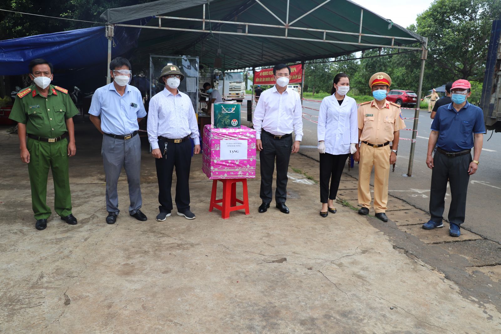 Chủ tịch UBND tỉnh Đắk Nông Hồ Văn Mười trao tặng quà cho các lực lượng tuyến đầu phòng, chống dịch tại điểm chốt xã Tâm Thắng, huyện Cư Jút.