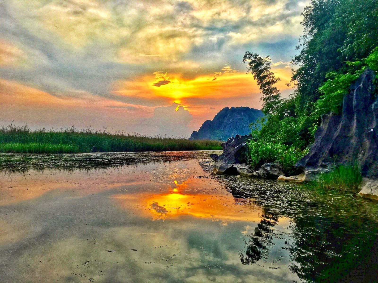 Có một trải nghiệm bạn nhất định phải thử đó là đón hoàng hôn trên Đầm Vân Long. Bạn có tưởng tượng ra không ? Khi hoàng hôn buông xuống, vạn vật sẽ nhuốm một màu vàng úa.. Mọi thứ dường như tỏa nắng kì diệu. Ngồi lênh đênh trên thuyền gỗ hít hà cái mùi lúa, mùi sen, mùi đồng quê yên ả thơm lừng cảm nhận sự bình yên của cuộc sống. Dòng chảy thời gian như ngừng lại. Một cái nắm tay của người đồng hành, cùng nụ cười hiền hậu của bác lái đò, làm tan chảy trái tim này.