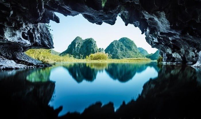 Khi thuyền vào đến Hang Cá, tôi thích thú cười sảng khoái. Qua hang là cả một thế giới khác. Cảm xúc lắng đọng như muốn vỡ òa. Một thung lũng nhỏ với rừng rậm bao phủ đặc quánh, một không gian yên tĩnh lạ thường, thỉnh thoảng có tiếng hót lanh lảnh của một loài chim không tên. Cảnh tượng kì bí, hùng vĩ ấy đã giúp tôi hiểu sâu sắc hơn về lí do Vân Long được chọn làm bối cảnh trong phim bom tấn Hollywood ( Kong: Skull Island).