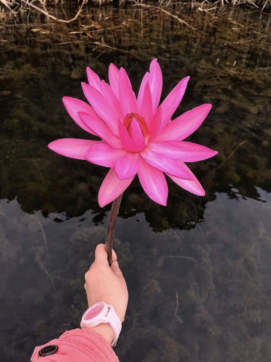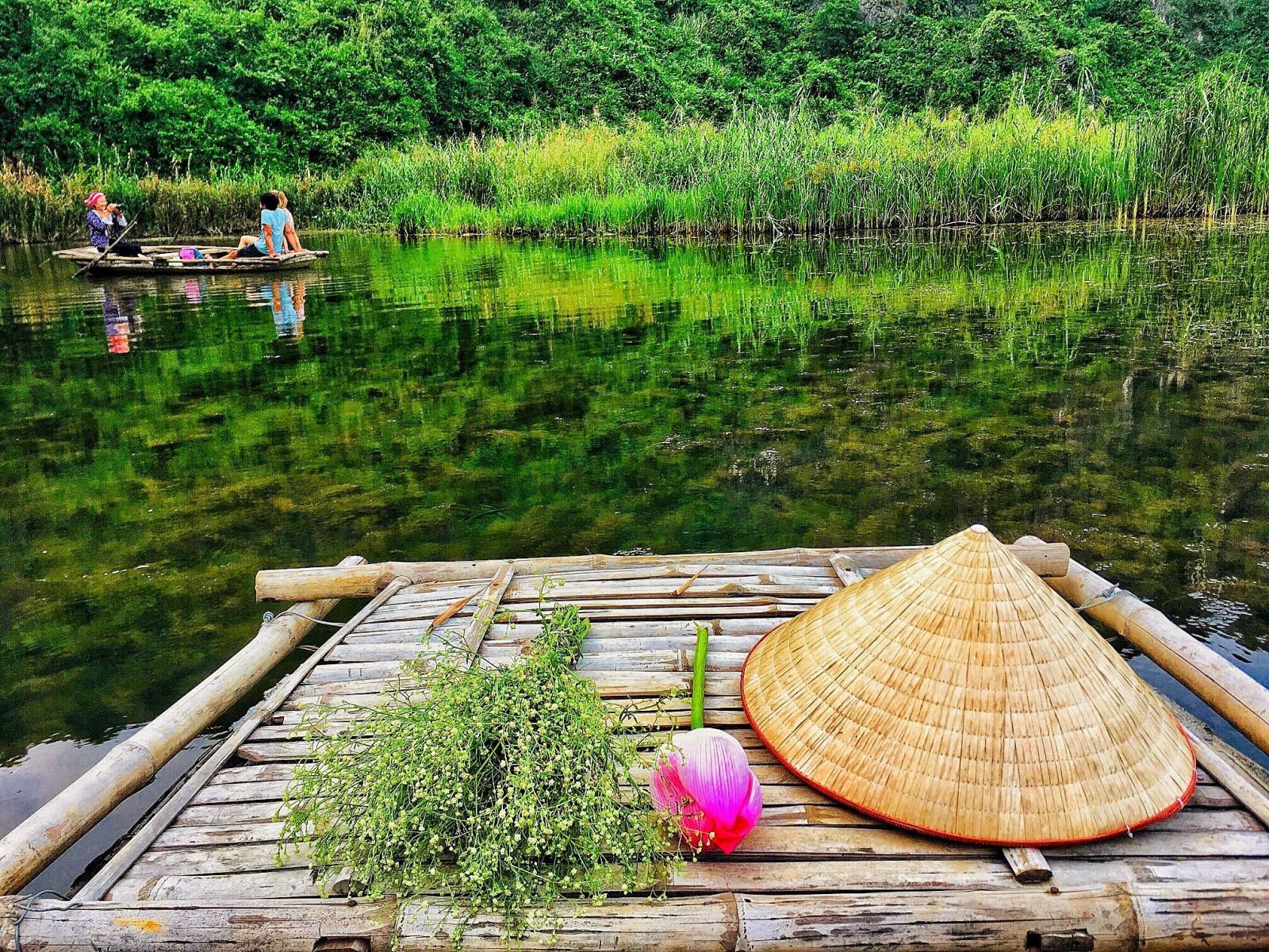Có lên thuyền khám phá mới thấy hết vẻ đẹp lãng mạn của “Vịnh không sóng”. Mặt đầm phẳng lặng như một chiếc gương khổng lồ in bóng nắng mặt trời, nước trong vắt có thể nhìn rõ rong rêu rất đẹp mắt, thỉnh thoảng tôi lại cho tay xuống nước để cảm nhận cái mùi vị tanh nồng ấy hòa quyện với đất trời. Xung quanh từng đám cỏ lau, có lác xanh mướt, những đóa hoa đủ màu sắc dập dềnh tô điểm cho bức tranh thủy mặc ấy. Ông lái đò còn cho tôi chèo thử thuyền, nụ cười rạng rỡ của ông ấm hơn cả nắng. Ấn tượng nhất, ông còn nhờ tôi bẻ một cây sậy để phì phèo hút thuốc lào. Trong một không gian thanh cảnh hữu tình như thế , khoảnh khắc ấy giúp tôi nhận ra cái chất dân dã, cái tình thấm đẫm của con người nơi đây
