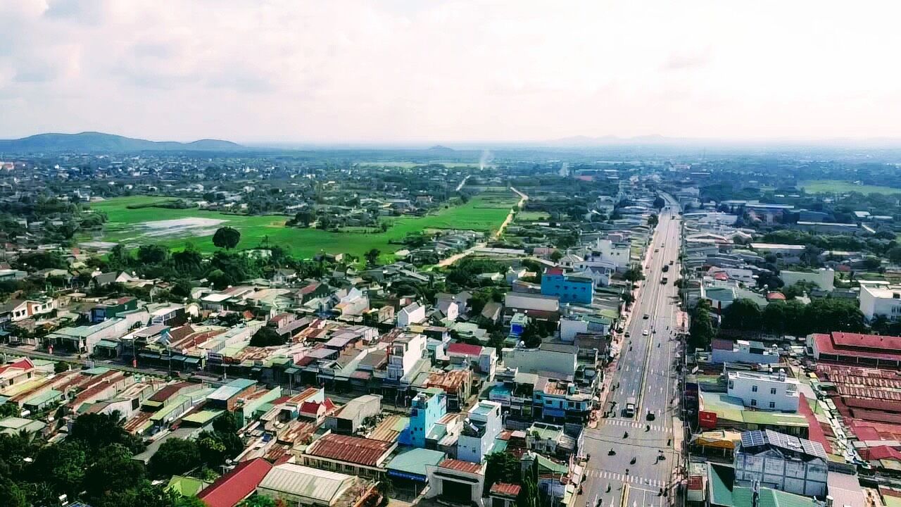 Thị trấn trấn Ea T’ling nhìn từ trên cao. (Ảnh: Thế Hùng)