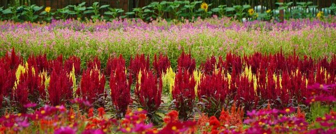 Thảm hoa đa màu sắc từ nhiều giống hoa của ông Đoàn Hữu Nhiều ở ấp Phú Long, xã Tân Dương - Ảnh: TL