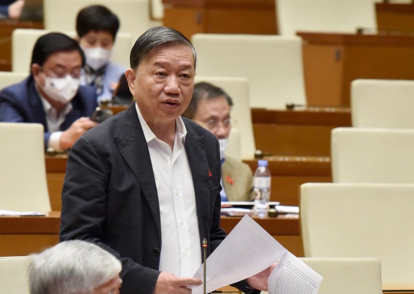 Bộ trưởng Bộ Công an Tô Lâm phát biểu tại Quốc hội. Ảnh: VGP/Lê Sơn