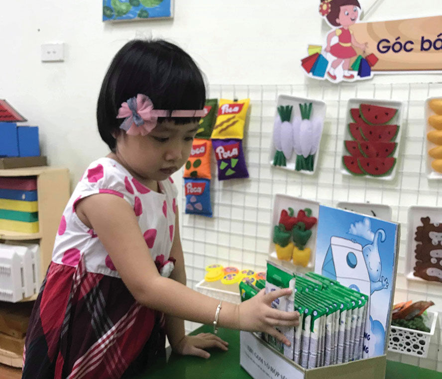 9h sáng, giờ uống sữa của 35 học sinh lớp Mẫu giáo lớn Trường Mầm non Đinh Tiên Hoàng, quận Hoàn Kiếm vừa kết thúc cũng là lúc các cháu hào hứng nhận miếng dán từ cô giáo và nhanh chóng gập phẳng, dán kín miệng chiếc vỏ hộp sữa vừa uống. Trong chốc lát, những chiếc vỏ hộp sữa đã được các bé xếp gọn gàng vào một chỗ, chờ người chuyển đi tái chế. Cô Vũ Thu Hương, giáo viên chủ nhiệm lớp cho biết: “Kể từ đầu tháng 10 đến nay, hoạt động thu gom vỏ hộp sữa đã được nhà trường thực hiện đều đặn mỗi sáng. Không chỉ giúp khuyến khích các con uống hết phần sữa mà việc thu gom vỏ hộp là dịp để chúng tôi chia sẻ với các con lợi ích của những chiếc vỏ hộp sữa và nhiều vật dụng khác trong việc tái chế, góp phần bảo vệ môi trường sống”.