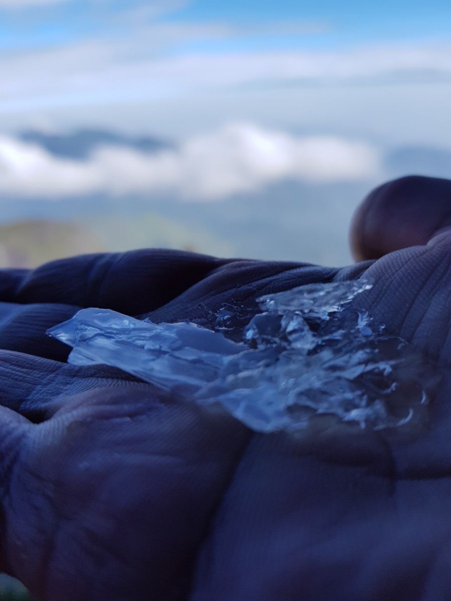 VNHNO - Đêm 30/10 và 31/10, nhiệt độ tại đỉnh Fansipan xuống dưới 0 độ C khiến cho hơi nước ngưng tụ và tạo thành những lớp băng mỏng bao phủ trên các bề mặt. Đây là lần đầu tiên băng giá xuất hiện trên đỉnh Fansipan từ đầu tháng 10 đến nay.