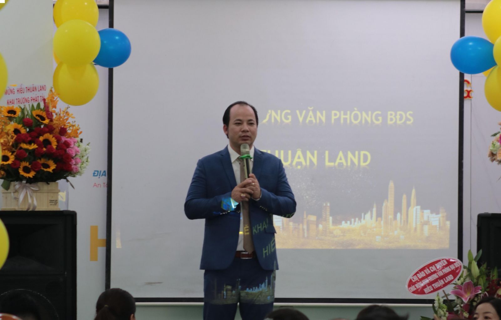 Ông Nguyễn Thanh Ngà -Tổng giám đốc Công ty Địa ốc Xanh Toàn Cầu, phát biểu tại Lễ khai trương VP đại lý Hiếu Thuận Land.