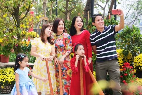 Người dân vui đón năm mới tại khuôn viên công viên bờ sông thuộc dự án Diamond Lotus Riverside. Ảnh: Phúc Khang