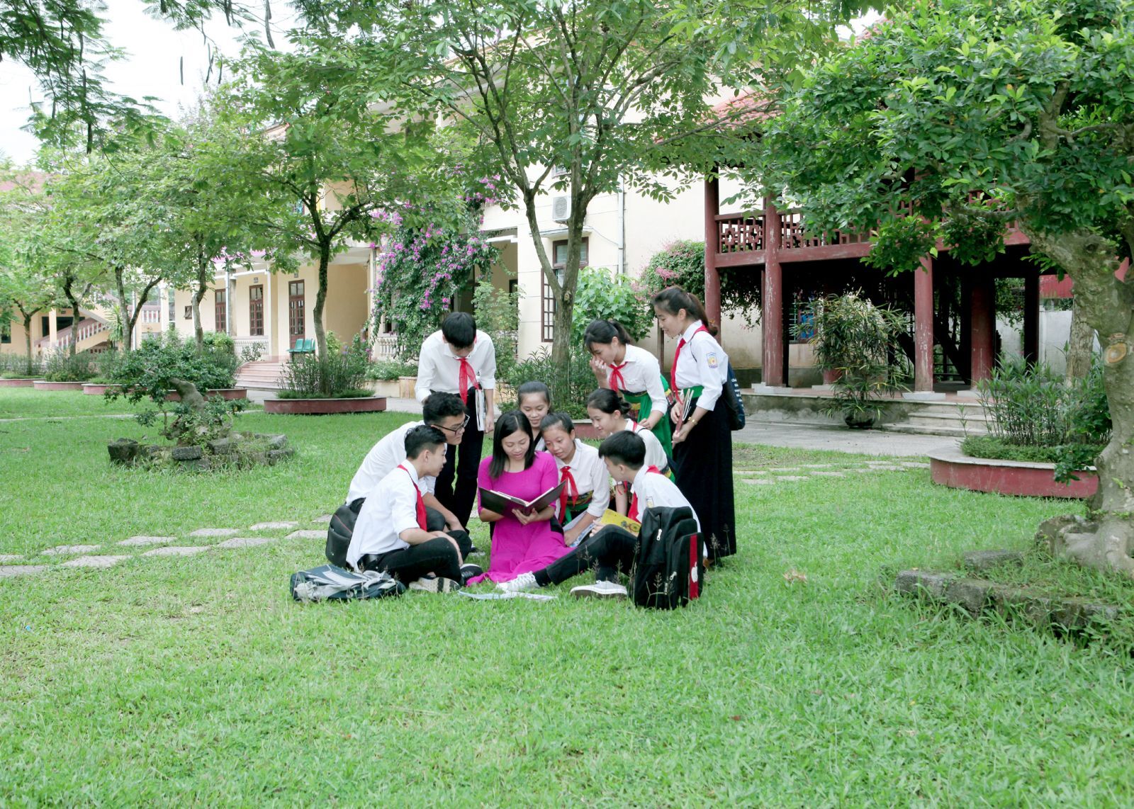 Cô và trò trường THCS Dân tộc nội trú Lang Chánh