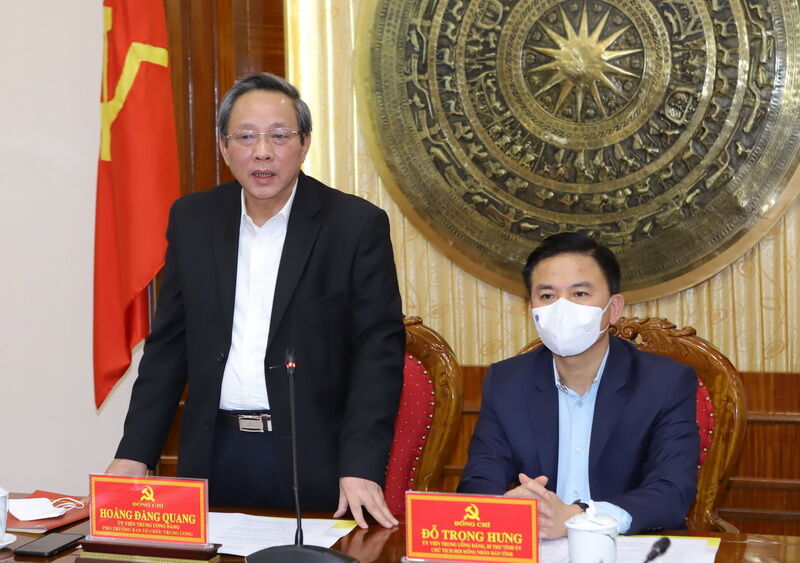 Kết luận hội nghị, Phó Trưởng Ban Tổ chức Trung ương Hoàng Đăng Quang bày tỏ ấn tượng về việc tỉnh Thanh Hóa thực hiện sắp xếp tổ chức bộ máy, sáp nhập các đơn vị hành chính cấp xã, cấp thôn, tổ dân phố thời gian qua, đồng thời đề nghị các thành viên trong đoàn nghiên cứu đưa vào báo cáo trình Bộ Chính trị về cách làm hay, sáng tạo, hiệu quả của Thanh Hóa.