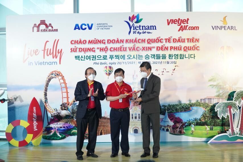 Lễ đón đoàn du khách hộ chiếu vaccine đầu tiên đến thành phố Phú Quốc được tổ chức tại Cảng hàng không quốc tế Phú Quốc với sự tham dự của Tổng Cục trưởng Tổng cục Du lịch Nguyễn Trùng Khánh, Phó Cục trưởng Cục Hàng không Việt Nam Võ Huy Cường và lãnh đạo bộ ngành, tỉnh Kiên Giang, thành phố Phú Quốc, Hãng hàng không Vietjet, Công ty Cổ phần Vinpearl và Công ty TNHH Du lịch Marketing Highland.