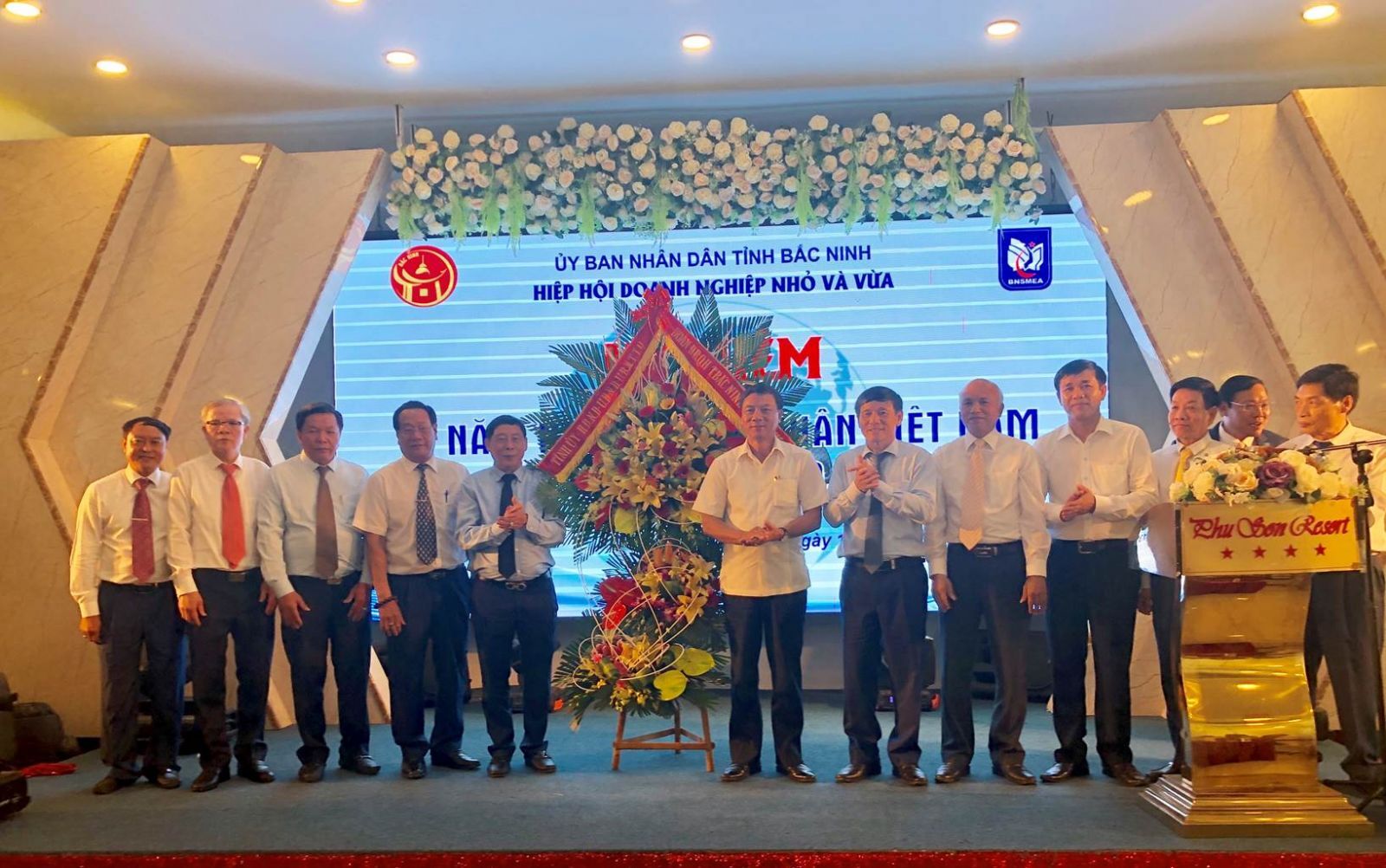 Lãnh đạo Tỉnh uỷ, UBND tỉnh Bắc Ninh tặng hoa chúc mừng Hiệp hội Doanh nghiệp nhỏ và vừa tỉnh Bắc Ninh.