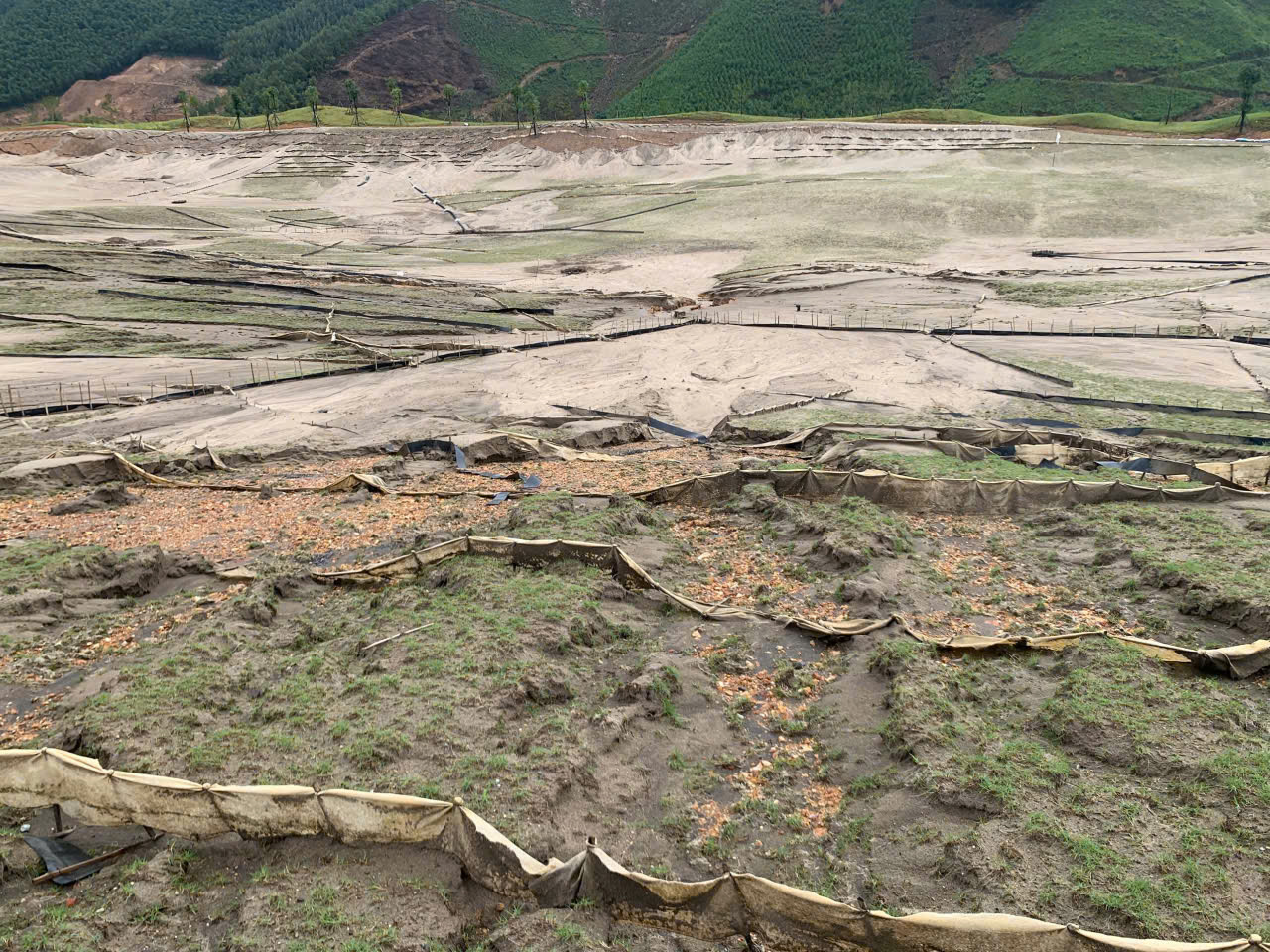Những bãi cỏ xanh mới trải còn chưa kịp bén rễ đã bị nước cuốn trôi, để lại những vệt đất sình lầy, nham nhở, loang lổ bùn đất. Nhiều tuyến đường nội bộ trong sân golf bị nứt và bong tróc lớp nhựa mặt, rãnh thoát nước bị tắc nghẽn do bùn đất. Hư hỏng toàn bộ phần đã tạo hình xong của 18 hole golf.
