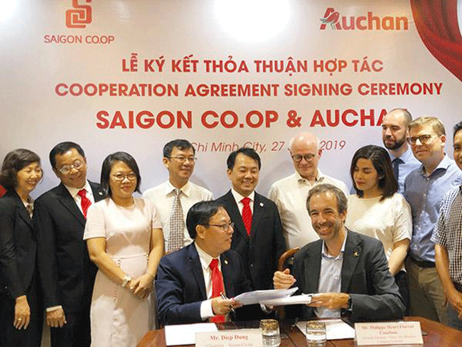 Cuối tháng 6 vừa qua, tại TP.HCM, Liên hiệp Hợp tác xã Thương mại TP.HCM (Saigon Co.op) và Auchan Reatil Việt Nam (Pháp) đã ký kết chuyển nhượng hoạt động. Hai bên đã bàn bạc một số triển vọng hợp tác như xuất nhập khẩu và nhiều cơ hội kinh doanh khác.
