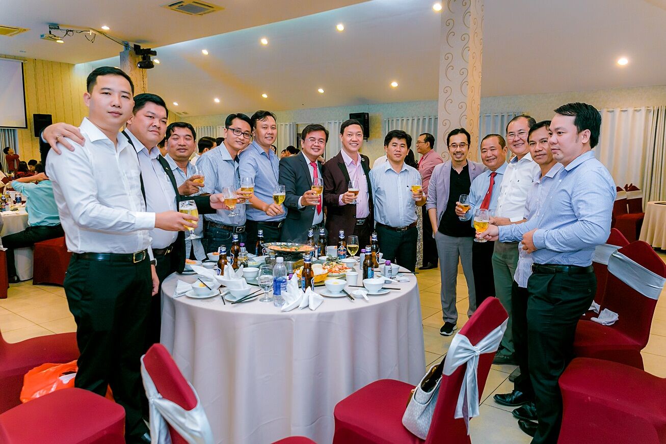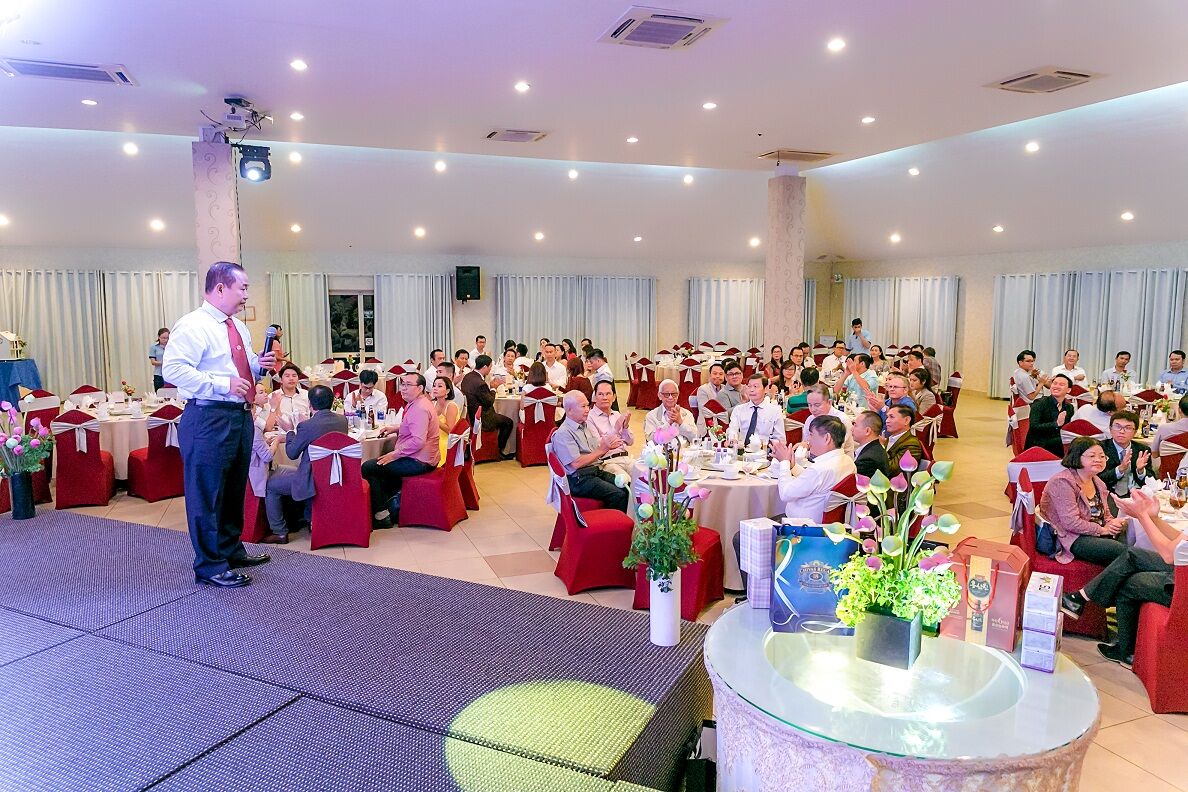 Ông Trần Văn Hậu (bìa trái) - Chủ tịch Tập đoàn Hùng Hậu và là Nhà tài trợ chính cho Buổi họp mặt.