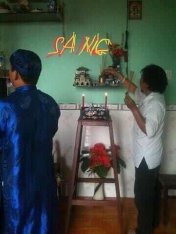 DN Nguyễn Hoàng Sang cùng đưa con, cháu đến tham dự lễ giỗ cúng bái ông bà Chủ chợ nhằm giáo giục thế hệ mai sau biết tri ân những bậc tiền nhân có công với đất nước.