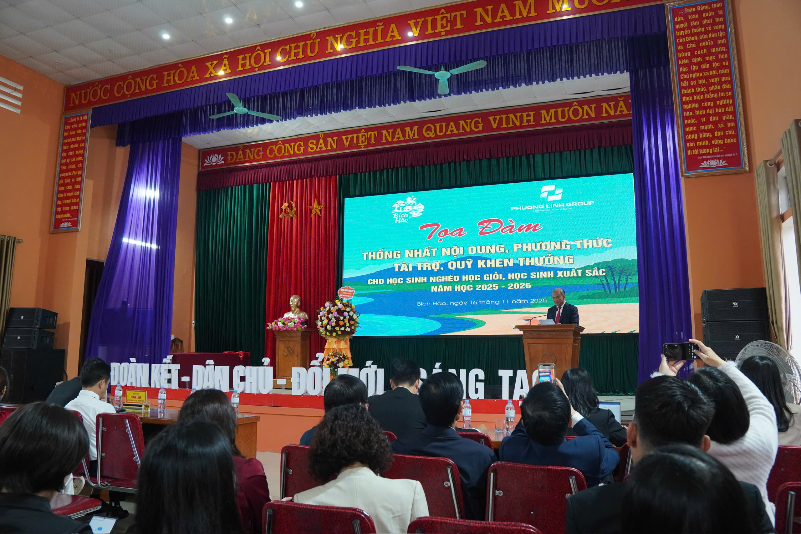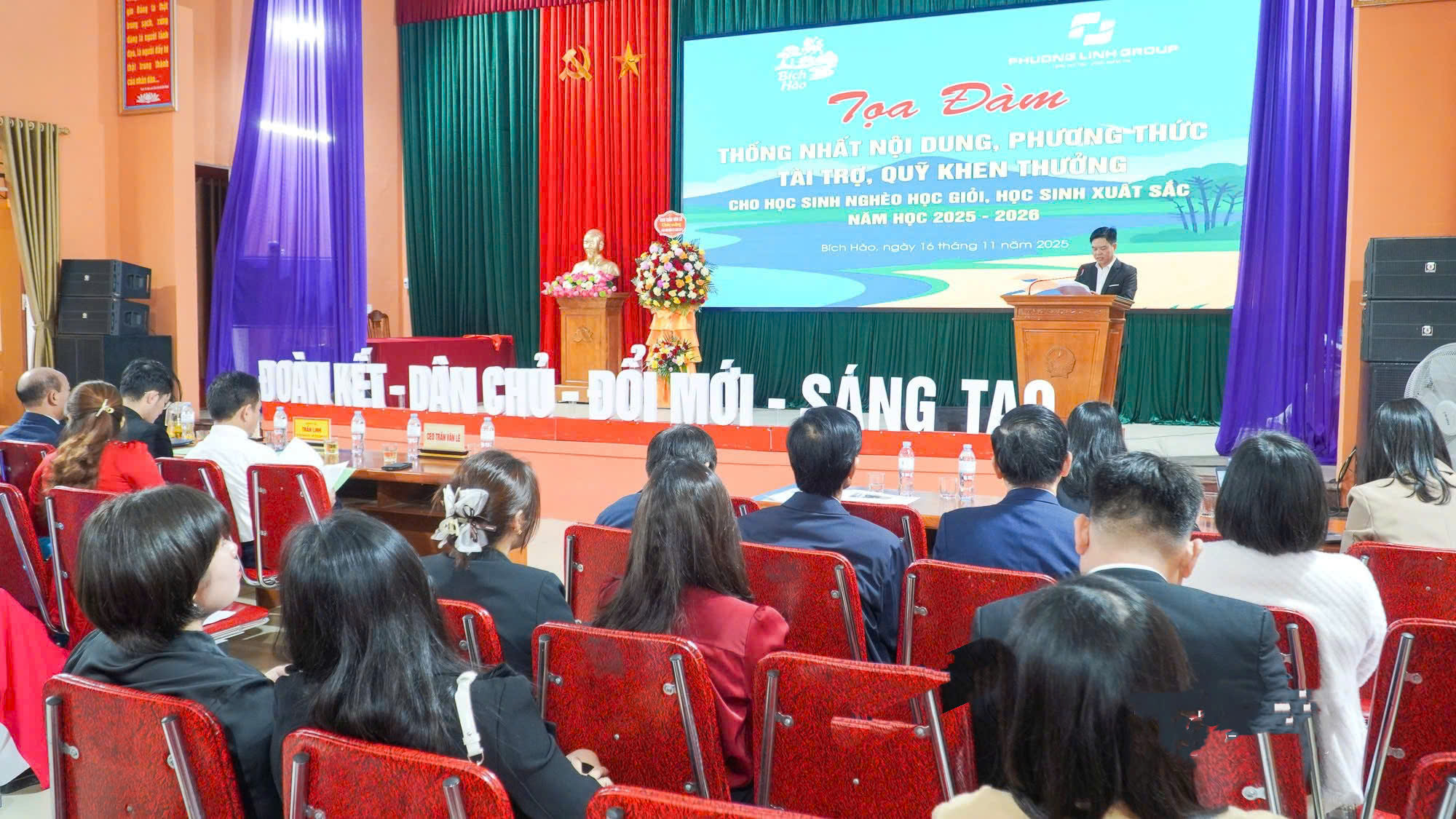 Xuất phát từ truyền thống tôn sư trọng đạo và nhân dịp kỷ niệm 43 năm Ngày Nhà giáo Việt Nam (20/11/1982 - 20/11/2025), Tập đoàn Phương Linh - đơn vị hàng đầu về sản xuất, phân phối quạt công nghiệp, máy-hệ thống hút lọc bụi xử lý môi trường tại Việt Nam, dưới sự chỉ đạo trực tiếp của Giáo sư, Tiến sĩ, Doanh nhân, Viện trưởng Viện Đào tạo Doanh nhân Thực chiến Trần Văn Lê - Chủ tịch HĐQT kiêm Tổng Giám đốc Tập đoàn đã phối hợp cùng UBND xã Bích Hào tổ chức Hội thảo: “Tầm quan trọng của hệ thống giáo dục cơ sở: Trường mầm non, Tiểu học, THCS, PTTH và thực trạng, giải pháp phát triển giáo dục giai đoạn 2025 - 2030”.
