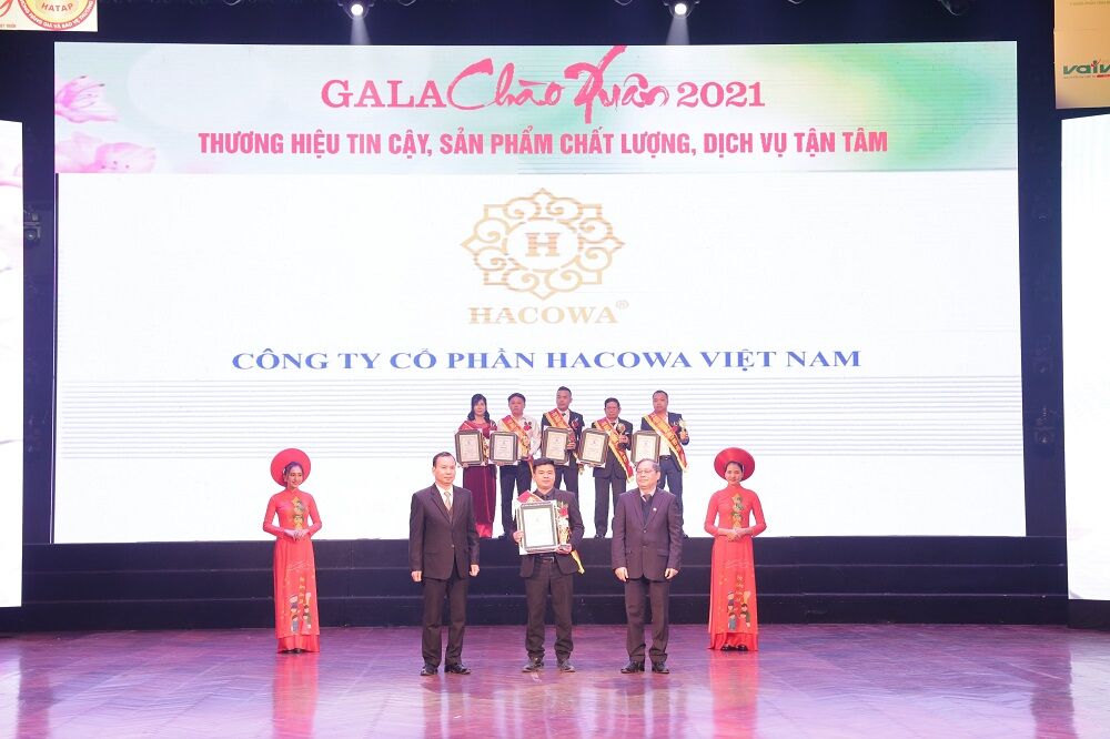Với những giá trị cốt lõi bền vững đã và đang trao đến với khách hàng trong những năm qua, ngày 10/01/2021, trong khuôn khổ chương trình “Gala chào xuân 2021 - Tự hào thương hiệu đất Việt”, Công ty CP Hacowa Việt Nam đã vinh dự được bình chọn là Top 10 “Thương hiệu tin cậy - Sản phẩm chất lượng - Dịch vụ tận tâm” năm 2020.