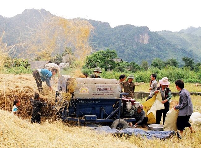 Người dân thu hoạch lúa ở xã Pú Nhung