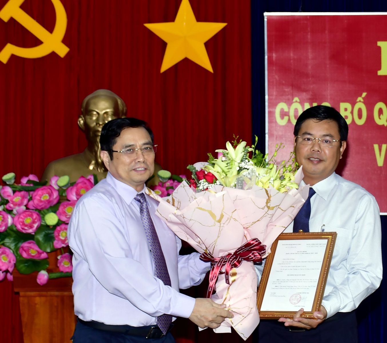 Đồng chí Phạm Minh Chính trao quyết định cho đồng chí Dương Thanh Bình. (Nguồn: Internet)