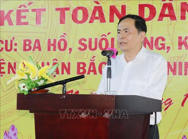 VNHN - Nhân kỷ niệm 89 năm Ngày thành lập Mặt trận Dân tộc thống nhất Việt Nam (18/11/1930-18/11/2019) và Ngày hội Đại đoàn kết toàn dân tộc (18/11), chiều 11/11, Đoàn công tác Trung ương do Bí thư Trung ương Đảng, Chủ tịch Ủy ban Trung ương Mặt trận Tổ quốc Việt Nam Trần Thanh Mẫn làm Trưởng đoàn đã dự Ngày hội Đại đoàn kết toàn dân tộc tại xã Công Hải, huyện Thuận Bắc (tỉnh Ninh Thuận).