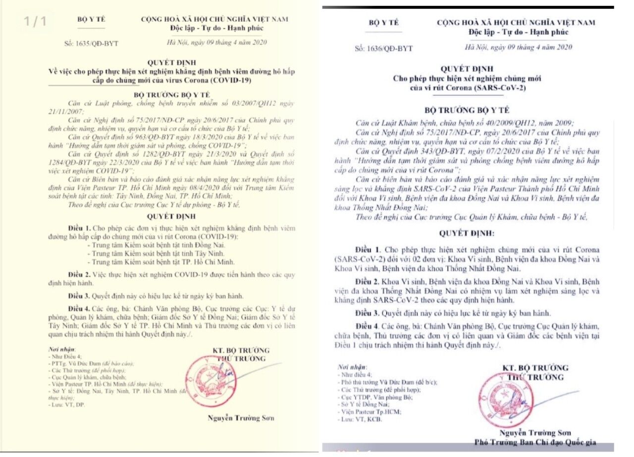 VNHN - Ngày 9/4, Bộ Y tế đã công bố quyết định cho phép Đồng Nai có 3 đơn vị được thực hiện xét nghiệm chủng mới của virut SARS-COV-2 là Trung tâm Kiểm soát Bệnh tật tỉnh, Bệnh viện Đa khoa Đồng Nai và bệnh viện Đa khoa Thống Nhất.