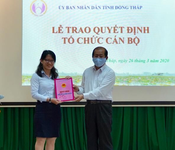 VNHN - Ngày 26/3, ông Đoàn Tấn Bửu - Phó Chủ tịch UBND tỉnh Đồng Tháp trao Quyết định của Chủ tịch UBND tỉnh điều động, bổ nhiệm bà Nguyễn Lâm Thanh Thủy - Phó Chánh Văn phòng UBND tỉnh, giữ chức Phó Giám đốc Sở Thông tin và Truyền thông tỉnh Đồng Tháp.
