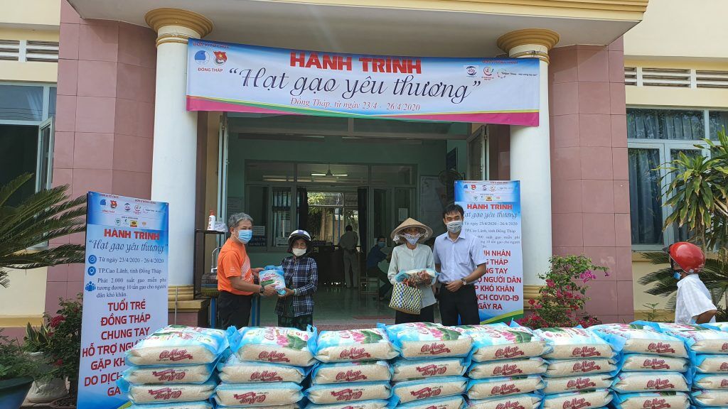 VNHN - Tỉnh đoàn Đồng Tháp triển khai hoạt động mang tên “Hành trình Hạt gạo yêu thương” để trao tặng quà cho người dân có hoàn cảnh khó khăn hoặc tạm thời bị mất việc làm do tác động của dịch Covid-19 tại thành phố Cao Lãnh (Đồng Tháp).