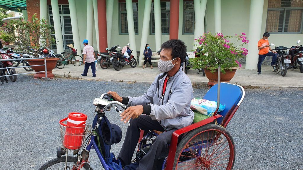 Bà Cao Thị Nhung ở ấp 2 xã Mỹ Trà, làm nghề bán vé số dạo chia sẻ cảm xúc, từ ngày dịch bệnh xảy ra, công ty xổ số ngừng phát hành nên bà rơi vào cảnh thất nghiệp, gia đình lại đông con cháu nên gặp rất nhiều khó khăn. “Dịch bệnh nên phải ở nhà, không đi buôn bán được, không có tiền xoay sở, ở nhà có gì ăn nấy chứ không biết sao. Nhà tui cháu đông lắm, tới 10 đứa lận, không đi bán vé số được khổ lắm. Nay nhờ chương trình này cho gạo tui mừng dữ lắm, tui muốn dịch bệnh mau hết để được đi bán vé số lại, kiếm tiền trang trãi cuộc sống qua ngày.”